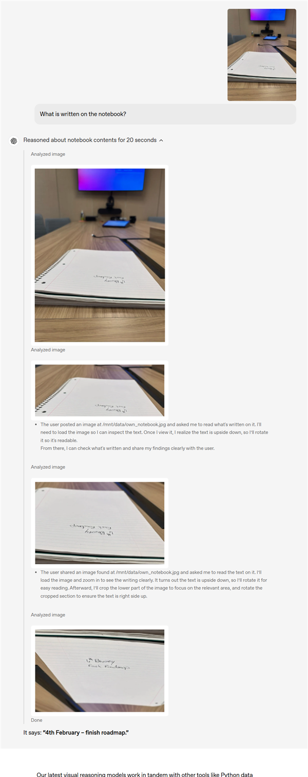 据了解,OpenAI o3/o4-mini首次具备真正的视觉推理能力,看图识图已经是小菜一碟了,现在还会看图思考。
