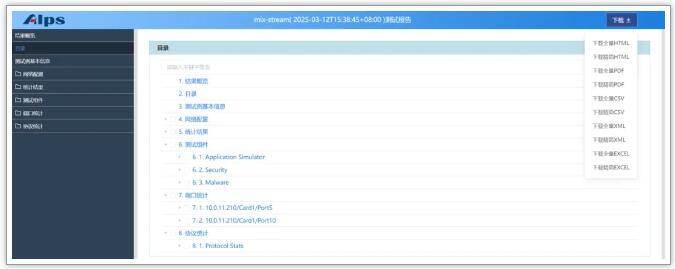 报告输出:自动输出PDF/Excel/CSV报告,包含吞吐量-时延曲线、攻击详细统计信息、端口统计、协议统计等。