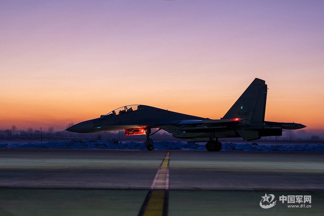 训练结束,战机陆续返航。当战机稳稳降落在跑道上,滑行至机棚,机务人员迅速上前,再次对战机进行细致的检查和维护,为飞机夜航训练做准备。尽管他们的脸庞已被寒风吹得通红,但工作热情却丝毫未减。