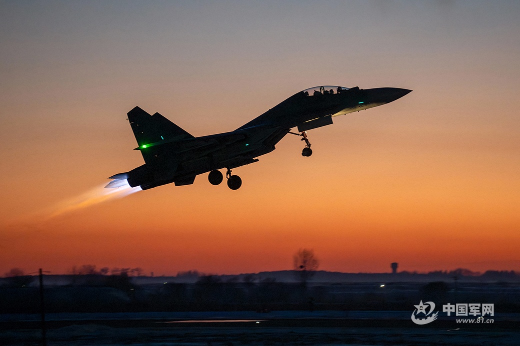 “计时起飞!”随着塔台指令下达,首架战机发动机骤然轰鸣,强大的气流卷起地面的积雪,炽热的尾焰瞬间驱散了寒冷。战机如离弦之箭迅速升空,直插云霄。紧接着,一架又一架战机依次呼啸而起,编队向训练空域飞去,机群划破长空的轰鸣声在机场上空久久回荡。