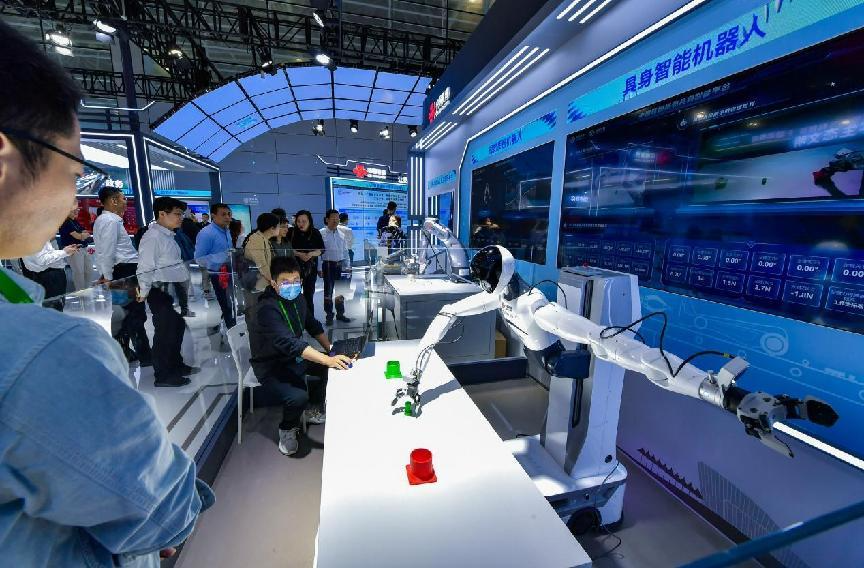 中国联通展区内的具身机器人正在精准抓取和分拣桌上的小零件,吸引了无数参展群众的目光。在AI赋能数字经济展区,中国联通现场展示了联通基于格物Unilink平台及5G的全套AI解决方案,依托5G边缘智算能力,整合5G工业控制、5G机器视觉、数字孪生等能力,构建“感知-决策-执行”一体的工业智能体平台。现场展示了5G一体化5G算网数控一体设备、5G工业实时控制套件、机器人视觉检测展项、具身智能分拣展项。通过机器视觉和人工语言交互,具身智能机器人可实现目标的识别,规划自主线路,完成物体的抓取和分拣。该系统还集成动捕套装、VR遥操,端云协同高效采集数据,通过流水线质检标注优化AI训练,适用于工厂搬运等场景。