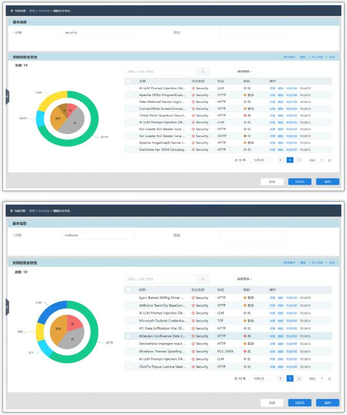 ■ 攻击流量注入:内置数万种攻击特征库,可以仿真大量的真实攻击流量和恶意病毒流量(包括Fuzzing测试)。