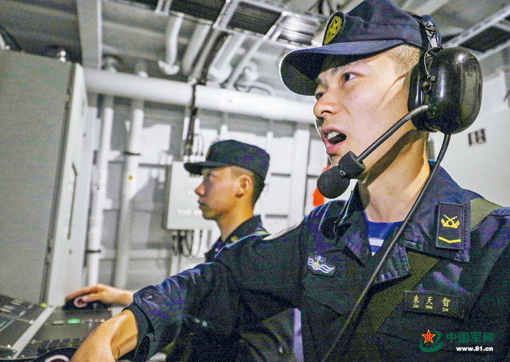 舰艇编队进入另一训练海区后,“敌舰”依托空中掩护企图对其发起偷袭。面对复杂“敌情”,指挥员紧急研判战场态势、制订作战方案。编队舰艇快速机动占领射击阵位,同时依托预警雷达系统对周边海域实时监控,锁定“敌舰”方位。随着一声令下,各舰主炮接续开火,对“敌舰”实施有效火力打击。